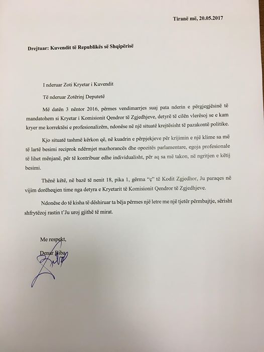| Jep dorëheqjen kryetari i KQZ-së në Shqipëri Posted: 22 May 2017 08:33 AM PDT Kryetari i KQZ-së në Shqipëri, Denar Biba, ka dhënë dorëheqjen nga detyra e tij si kryetar i Komisioni Qendror të Zgjedhjeve në Shqipëri. Komisioni i Ligjeve ka bërë konstatimin e dorëheqjes së Bibës nga detyra e kreut të KQZ-së. "Sipas ligjit të Mërfit, 'nëse diçka e keqe do të ndodhë, atëherë ajo do të ndodhë në momentin më të keq të mundshëm". Ja kështu është ky 'ndryshim kuajsh në mes të lumit', i padëshirueshëm nga këndvështrimi i ngushtë i stabilitetit të institucioneve, por i nevojshëm për stabilitetin e vendit", ka shkruar Biba në profilin e tij të Facebook-ut. Biba e konsideron këtë një aksident profesional por që nuk ka pasoja të pakthyeshme, dhe se aksidentet janë të nevojshme për evolucion. "Personalisht e konsideroj një aksident profesional përgjatë një karriere të konsoliduar, që nuk ka asnjë pasojë të pakthyeshme. Fundja, aksidentet shpesh kanë qenë shkak për evolucionin njerëzor, dhe unë e kam të provuar mëse njëherë këtë", ka shkruar ai. Bashkë me këtë reagim në profilin e tij në Facebook, Biba ka publikuar edhe letrën e dorëheqjes. /Insajderi.com The post Jep dorëheqjen kryetari i KQZ-së në Shqipëri appeared first on INSAJDERI. |