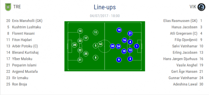 - Formacionet zyrtare: Trepça ’89 – Vikingur Gota