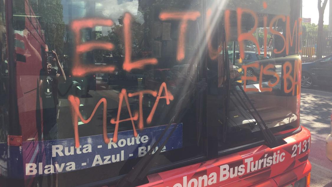 Στη Βαρκελώνη μασκοφόροι «επιτέθηκαν» σε τουριστικό λεωφορείο κοντά στο «Καμπ Νου», το γήπεδο της Μπαρτσελόνα· έγραψαν το σύνθημα «ο τουρισμός σκοτώνει τις γειτονιές» και τρύπησαν τα ελαστικά του λεωφορείου. Κανένας από τους επιβάτες δεν τραυματίστηκε.