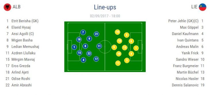 - Formacionet zyrtare: Shqipëri – Lihtenshtajn