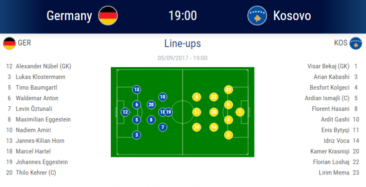 - Formacionet zyrtare të Gjermanisë U-21 kundër Kosovës U-21