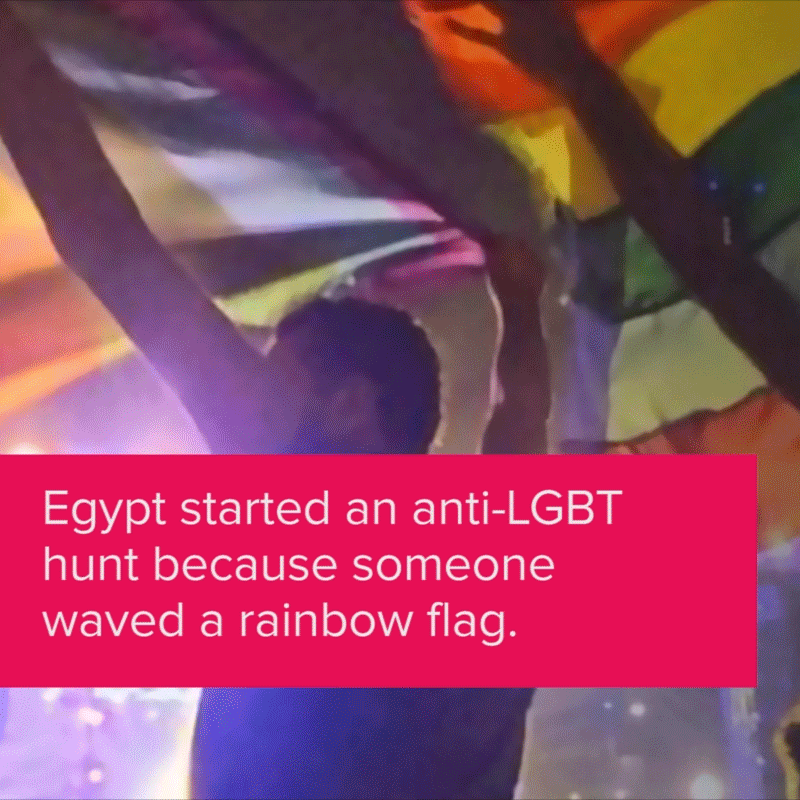 At least 43 people have been detained here in Egypt just because someone waved a rainbow flag.