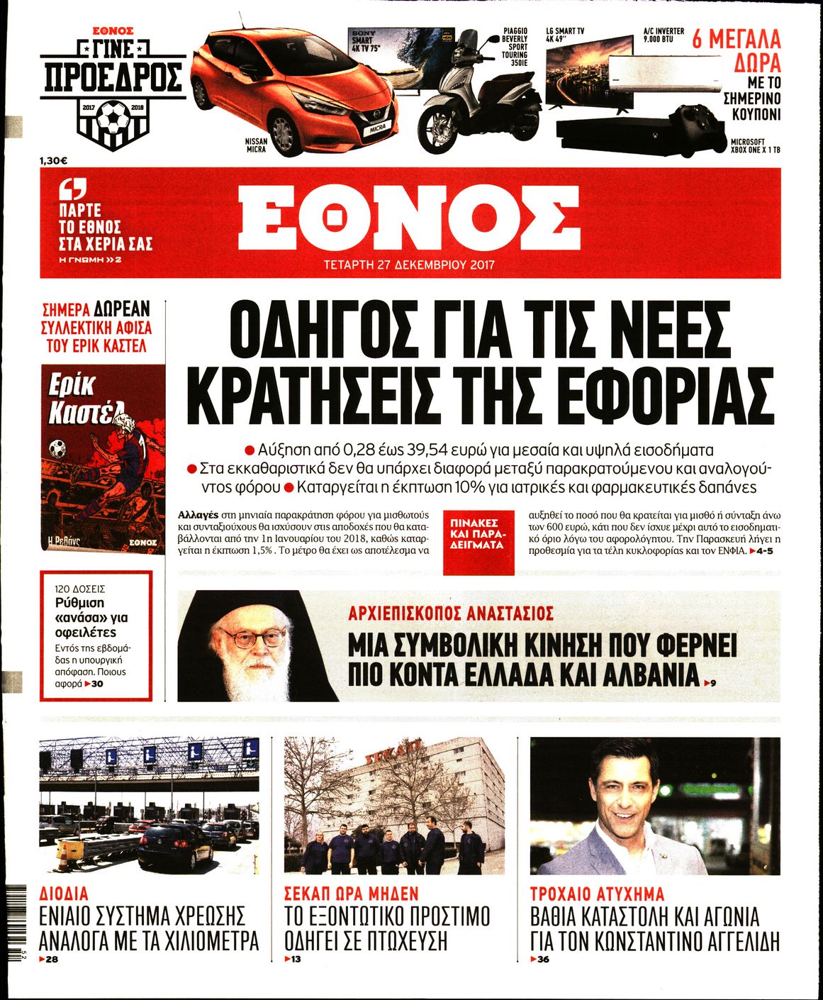 ΕΘΝΟΣ: «Οδηγός για τις νέες κρατήσεις της εφορίας»